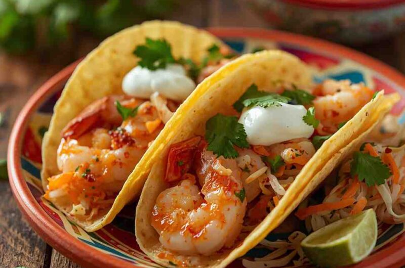 Shrimp Tacos with Lime Crema and Cabbage Slaw are a fresh, vibrant, and flavorful twist on classic tacos. Tender, juicy shrimp are seasoned and seared to perfection, then nestled in soft tortillas and topped with a tangy, creamy lime crema and crunchy cabbage slaw. Every bite bursts with a balance of sweet, spicy, tangy, and savory flavors.