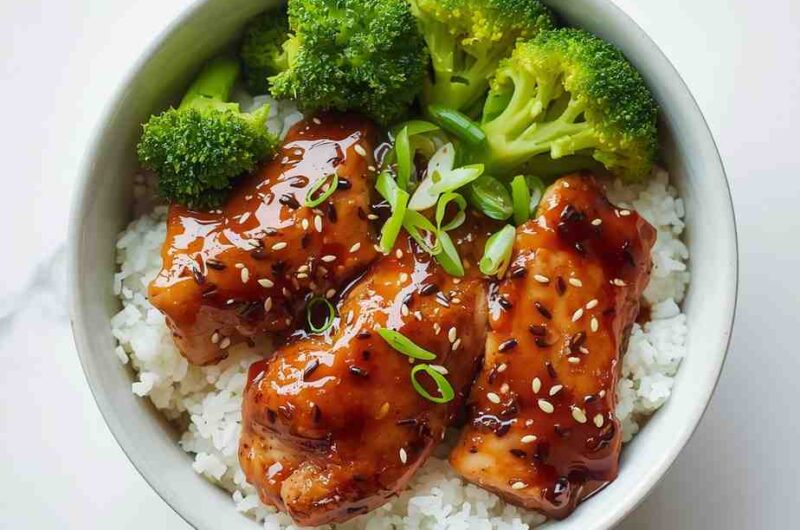 The glossy sauce—made with soy sauce, ginger, garlic, brown sugar, and sesame—coats the juicy chicken perfectly, making each bite bold yet comforting. When served over a warm bed of rice with bright green broccoli, it becomes a nourishing, restaurant-style meal you can enjoy at home.