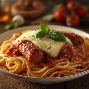 Baked Spaghetti Pasta with Savory Sausages