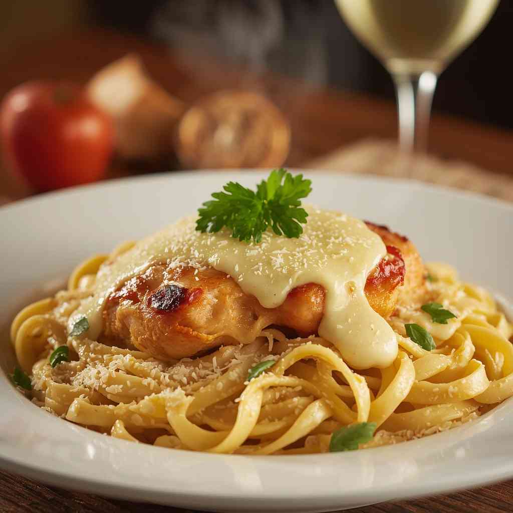Every bite offers tender chicken, creamy sauce, and perfectly melted mozzarella — all baked together into warm, golden perfection. Whether for a cozy family dinner or a dinner party centerpiece, this dish delivers comfort, flavor, and satisfaction in every forkful.