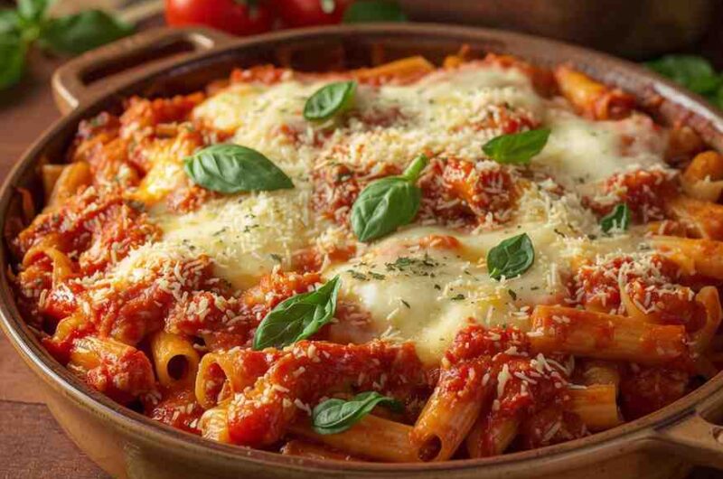 Baked Ziti Pasta with Mozzarella and Marinara is everything you want in a comfort meal — cheesy, saucy, and utterly heartwarming. Each forkful delivers a perfect blend of tender pasta, rich tomato sauce, and creamy cheese.