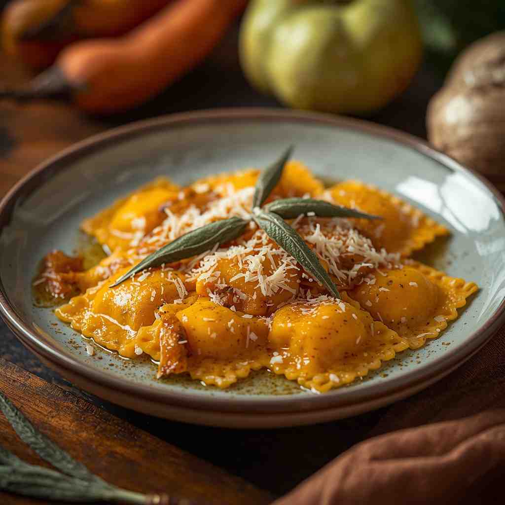 • Step 6: Combine and Serve : Add the cooked ravioli to the skillet with sage butter. Toss gently to coat. Serve warm, topped with crispy sage leaves and grated Parmesan.