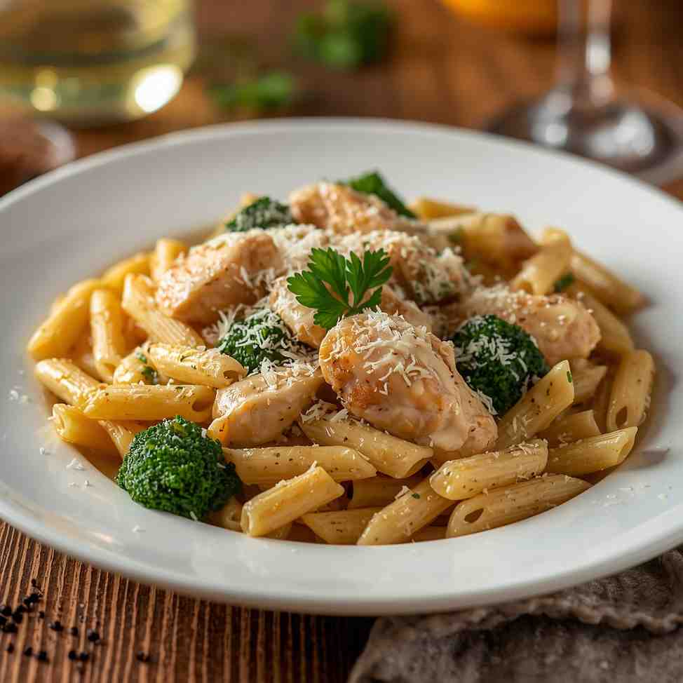 Chicken and Broccoli Alfredo Penne with Parmesan