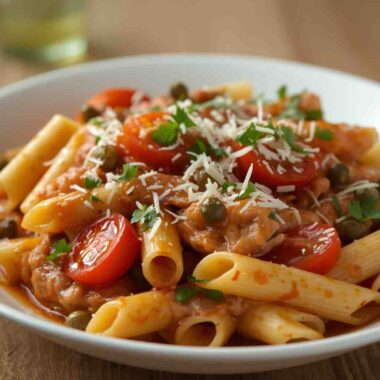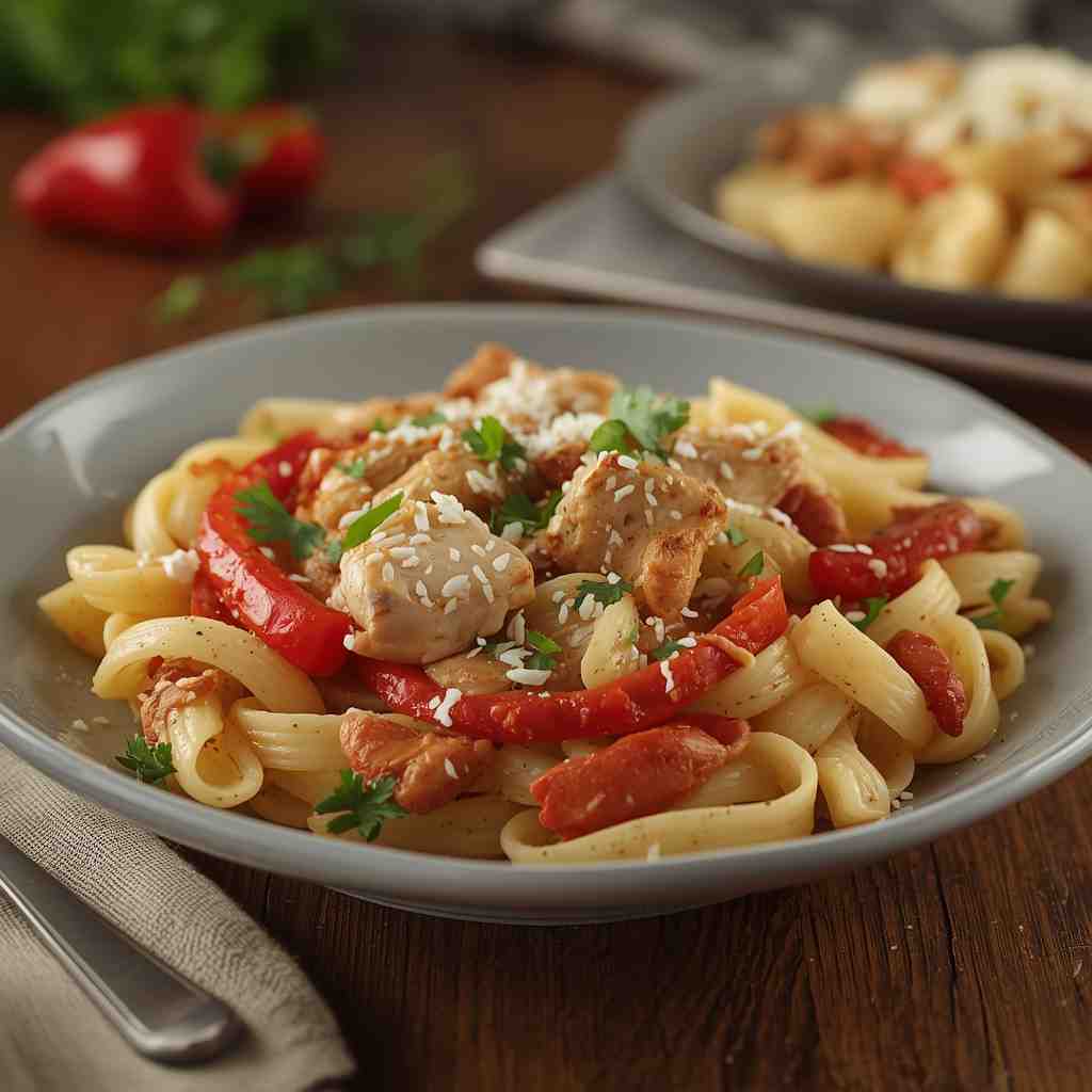 - Step 5: Combine Everything : Add the cooked pasta and sliced chicken into the creamy sauce. Toss well to coat evenly. Add a splash of reserved pasta water if needed to loosen the sauce. Cook for another 2–3 minutes, letting the flavors meld beautifully.