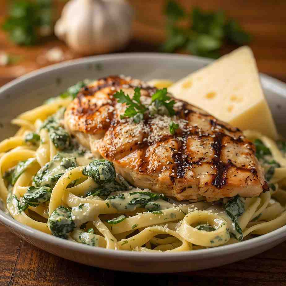 I absolutely love this recipe because it combines everything comforting in one bowl — tender chicken, creamy garlic sauce, and fresh spinach for a touch of green goodness. The sauce is rich and luscious but balanced by the slight earthiness of spinach and the sharp nuttiness of Parmesan.