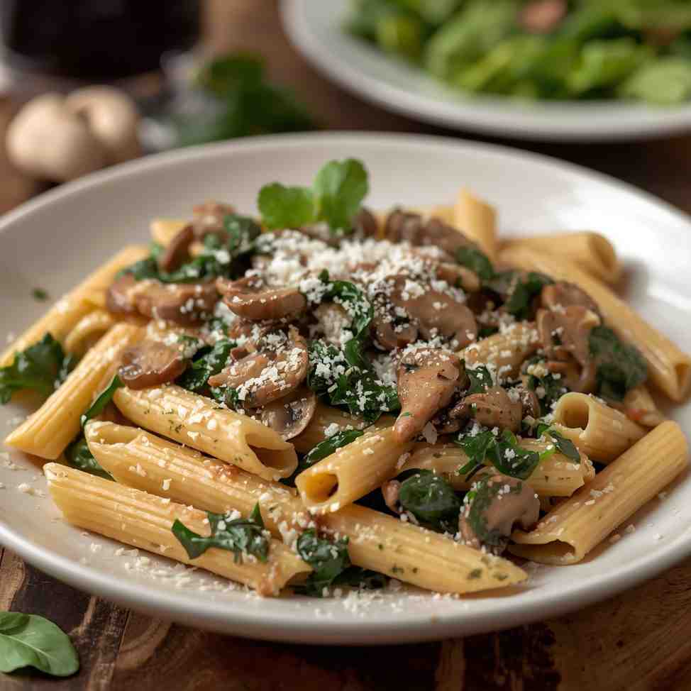Creamy Spinach and Mushroom Penne Pasta