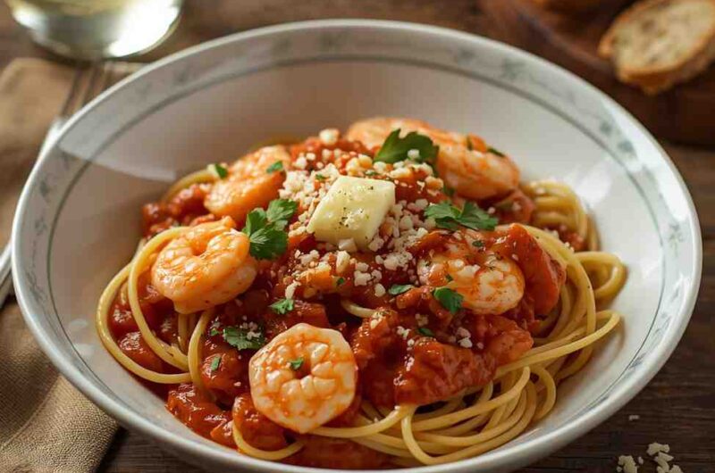 The sauce is infused with garlic, butter, and crushed tomatoes, then finished with a touch of cream and Parmesan cheese for that luscious texture that perfectly coats each strand of pasta. It’s comfort food elevated with seafood elegance — a dish that’s sure to impress family, guests, or even just yourself on a cozy night in.