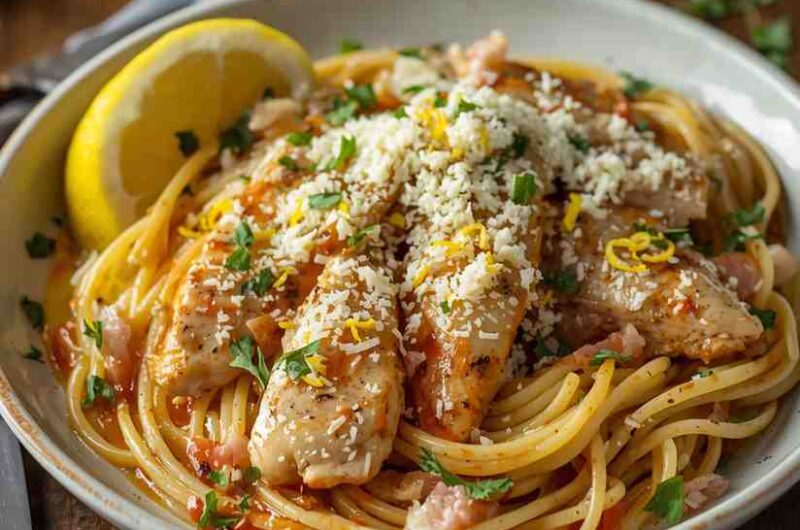 Lemon Garlic Chicken Spaghetti with Parmesan