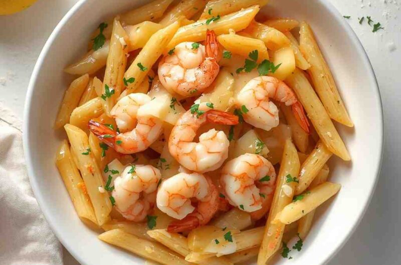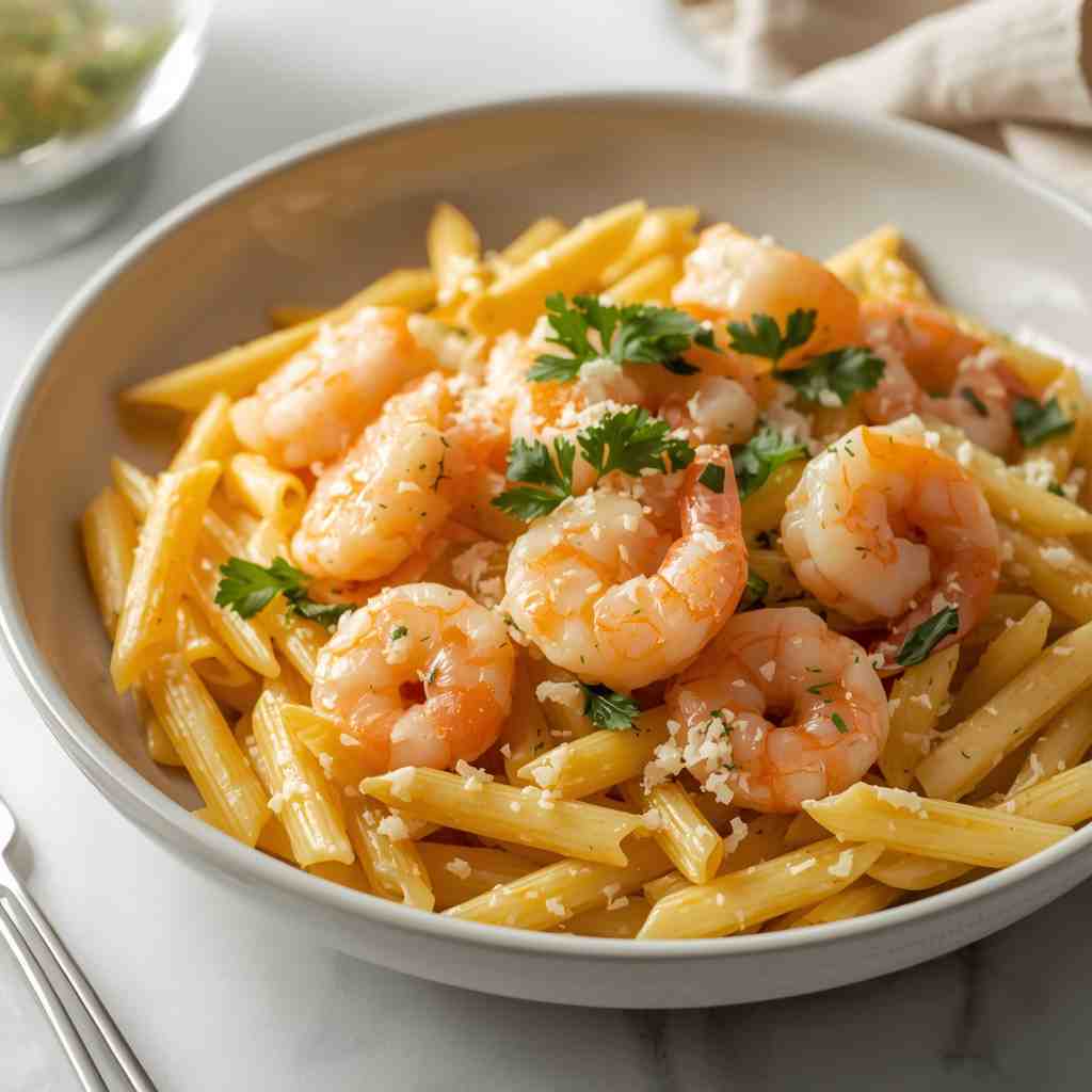 Lemon Garlic Shrimp Penne with Parmesan is a beautifully bright and flavorful pasta dish that combines tender shrimp, perfectly cooked penne, and a luscious lemon-garlic butter sauce topped with freshly grated Parmesan cheese.