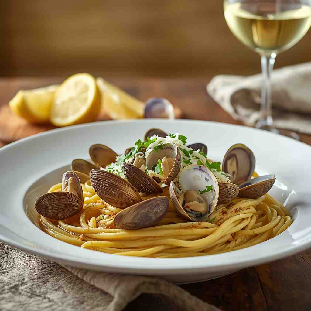 Linguine alle Vongole (Linguine with Clams) is a quintessential Italian seafood pasta that embodies the coastal spirit of Italy—simple, elegant, and bursting with the taste of the sea. This dish combines tender, briny clams, fragrant garlic, fresh parsley, a splash of white wine, and perfectly cooked linguine, all tied together by a delicate, buttery sauce kissed with olive oil and a touch of chili flakes.