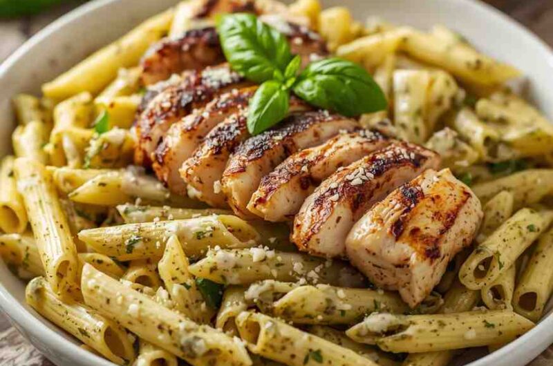 Pesto Alfredo Penne with Grilled Chicken
