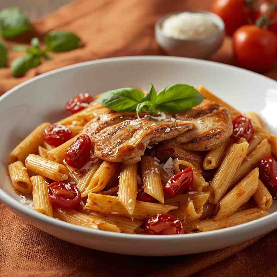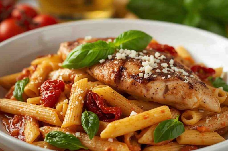 Pesto Chicken Penne with Sun-Dried Tomatoes