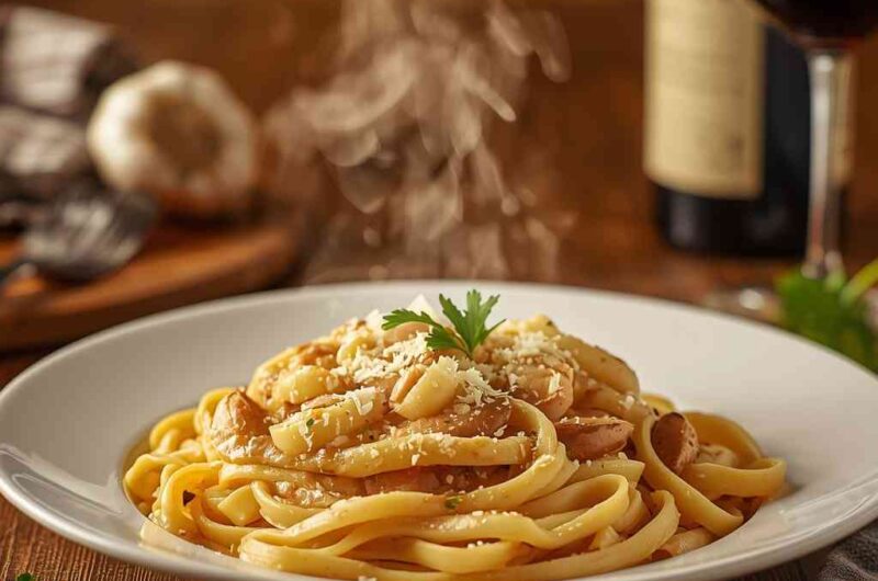 Whether served as a weeknight dinner or a romantic meal, this fettuccine never fails to impress. It’s creamy, garlicky, and utterly satisfying — a true celebration of Italian comfort food.