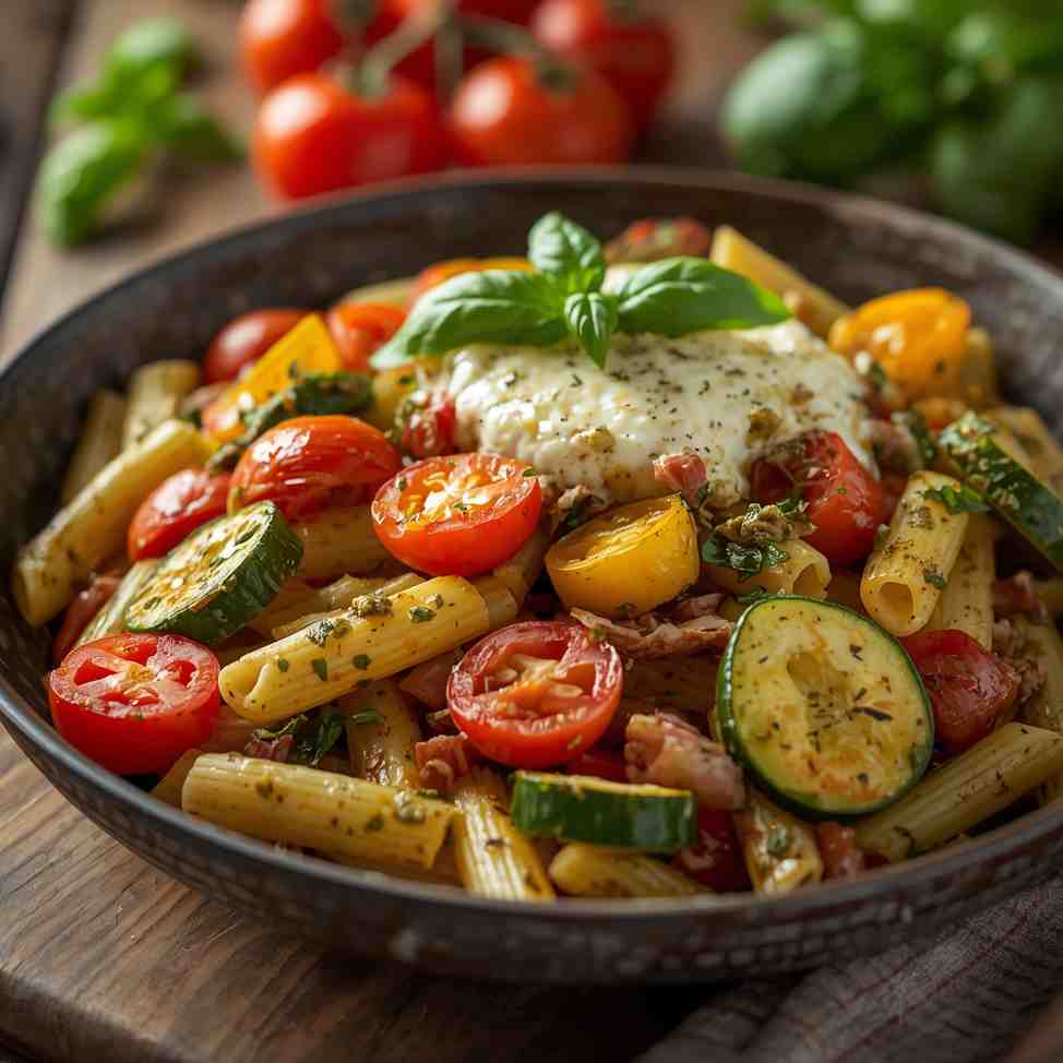 The Roasted Veggie Pesto Pasta with Cheese is a celebration of fresh, wholesome ingredients brought together in one delicious, comforting dish. The roasted vegetables provide depth and sweetness, while the pesto infuses every strand of pasta with vibrant herbal notes and cheesy richness.