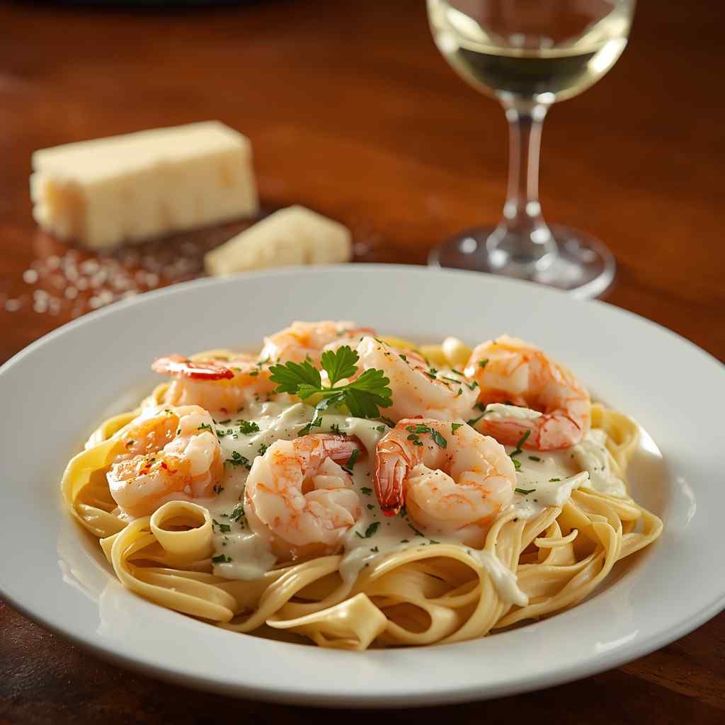 The fresh parsley adds brightness and color, while the shrimp introduces a light seafood touch that perfectly complements the richness of the sauce. It’s a meal that feels both comforting and restaurant-worthy — ideal for a romantic dinner, family gathering, or a cozy night in.