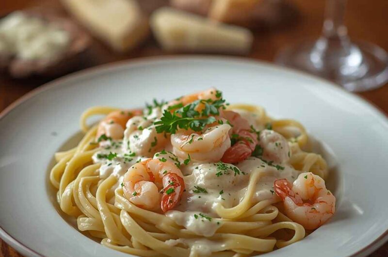 The fresh parsley adds brightness and color, while the shrimp introduces a light seafood touch that perfectly complements the richness of the sauce. It’s a meal that feels both comforting and restaurant-worthy — ideal for a romantic dinner, family gathering, or a cozy night in.
