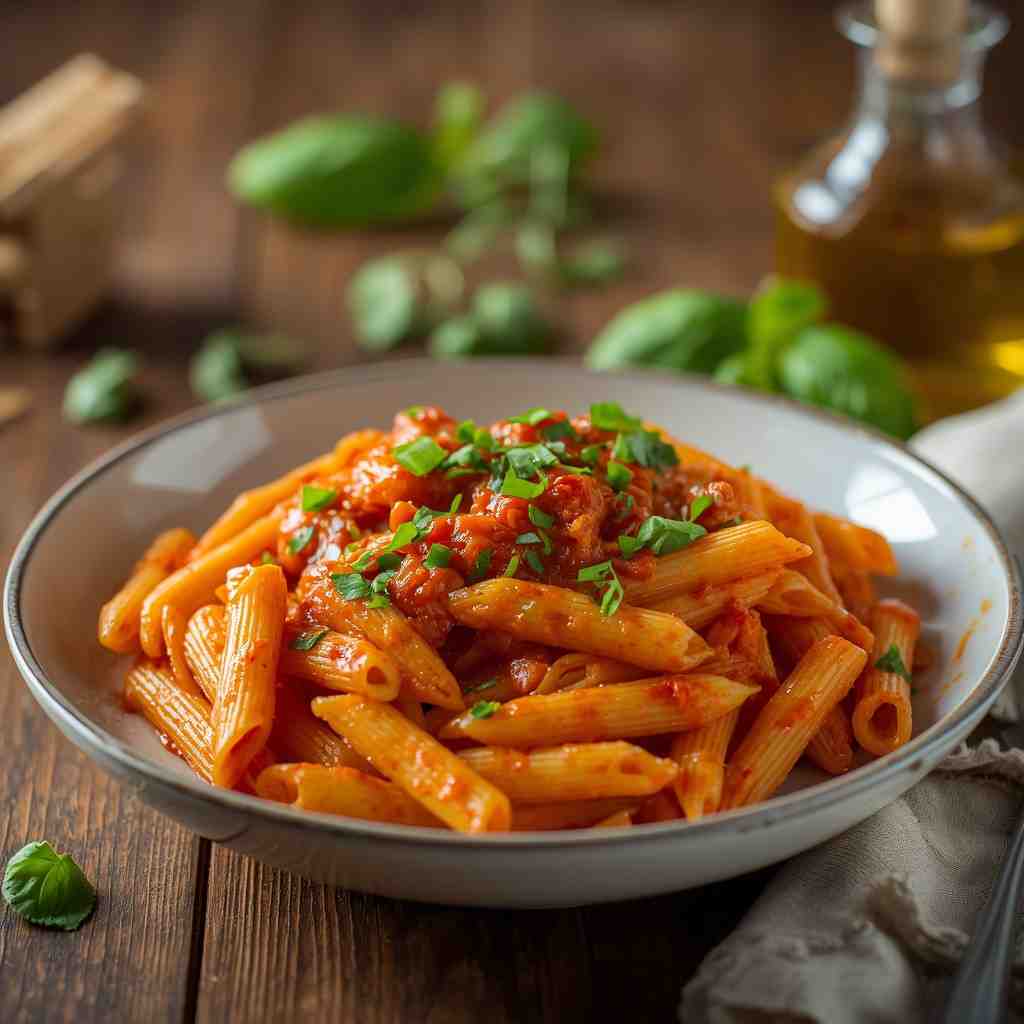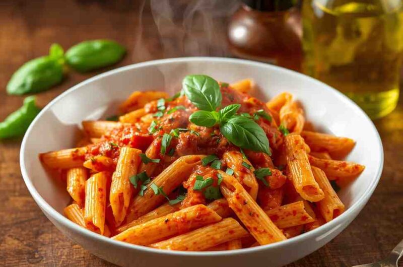 Spicy Penne Arrabbiata with Fresh Basil and Olive Oil is the perfect balance of heat, tang, and freshness — a true Italian masterpiece made with minimal ingredients and maximum flavor. It’s the kind of pasta that wakes up your taste buds, fills your kitchen with irresistible aromas, and reminds you that the best meals are often the simplest.