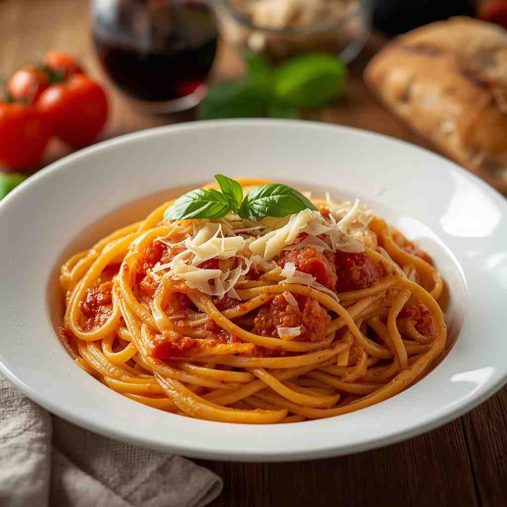 Tomato Basil Pasta with Parmesan Shavings is the perfect example of how simple ingredients can create extraordinary flavor. It’s elegant, aromatic, and comforting — everything you want from an Italian meal.