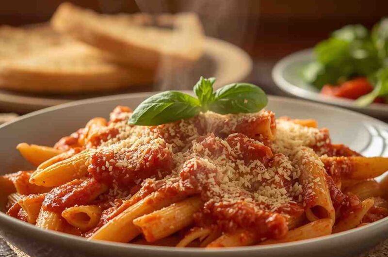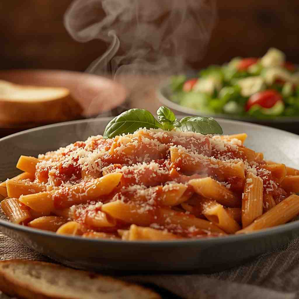 The penne pasta perfectly holds the sauce, while Parmesan melts into every bite, and the basil gives a fresh, aromatic finish. I love how it comes together in under 30 minutes but delivers a flavor that tastes like it simmered all day.