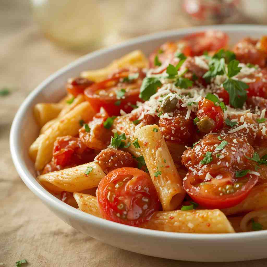 Tuna Penne Pasta with Capers and Tomatoes is a beautiful celebration of simple, fresh, and wholesome Mediterranean cooking. It’s quick, budget-friendly, and absolutely bursting with flavor — the perfect recipe for days when you want something satisfying yet effortless.