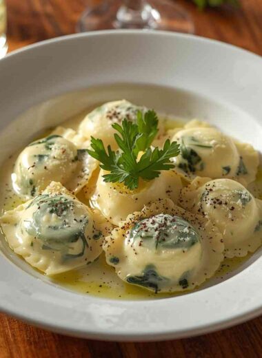 Spinach and Cheese Ravioli with White Sauce