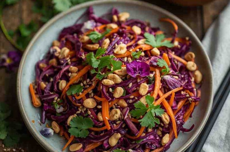 Asian Slaw with Peanut Dressing is a crunchy, flavorful, and versatile salad that’s perfect for any occasion. Sweet, tangy, and nutty dressing coats crisp vegetables and fresh herbs, creating a refreshing, satisfying dish. Ideal as a side, main, or topping for rice bowls and tacos, this salad proves that healthy food can be quick, delicious, and crowd-pleasing.