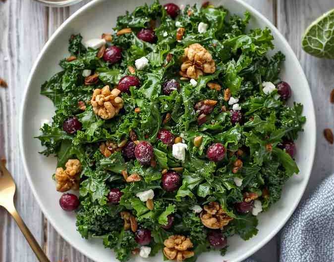Kale and Cranberry Salad is a colorful, healthy, and flavorful dish that’s quick to prepare and packed with nutrition. With its tender massaged kale, sweet-tart cranberries, crunchy nuts, and tangy dressing, it’s a perfect salad for everyday meals or special occasions. Easy, versatile, and delicious, it’s a must-try for anyone looking to enjoy a nutritious and satisfying salad.