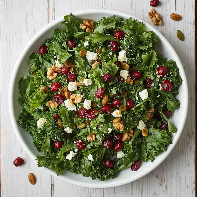 Kale and Cranberry Salad is a vibrant, nutrient-packed dish that combines the hearty, slightly bitter flavor of kale with the tart sweetness of dried cranberries. Tossed with a tangy lemon vinaigrette and complemented by crunchy nuts and creamy cheese, this salad offers a wonderful balance of flavors and textures.