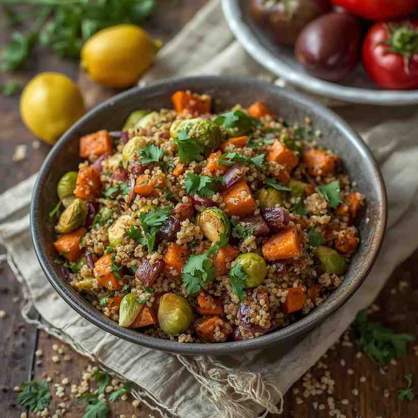 • Step 4: Assemble the Salad : Combine cooked quinoa and roasted vegetables in a large bowl. Pour dressing over and toss well. Mix in herbs, cheese, or nuts if desired.