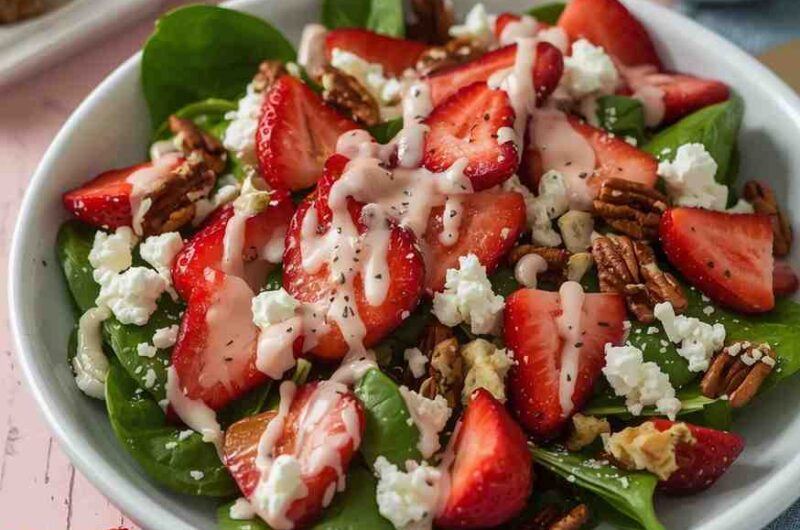 Spinach and Strawberry Salad with Poppy Seed Dressing is a refreshing, vibrant, and colorful dish that beautifully balances sweet and savory flavors. The crisp baby spinach leaves paired with juicy strawberries create a delightful contrast, while the creamy, slightly tangy poppy seed dressing ties everything together. This salad isn’t just nutritious — it’s visually stunning and bursting with fresh seasonal flavor.