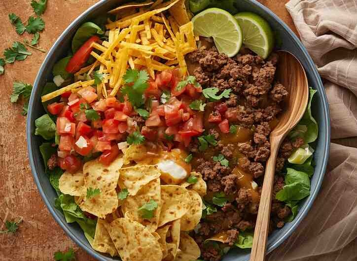 Taco Salad with Ground Beef is a colorful, flavorful, and satisfying meal that combines the best of tacos in a fresh, healthy salad. Quick to prepare, versatile, and perfect for lunch, dinner, or meal prep, it’s a must-try for anyone who loves bold, Mexican-inspired flavors. With juicy ground beef, crisp vegetables, creamy avocado, and zesty dressing, this taco salad delivers a balanced, filling, and delicious experience in every bite.