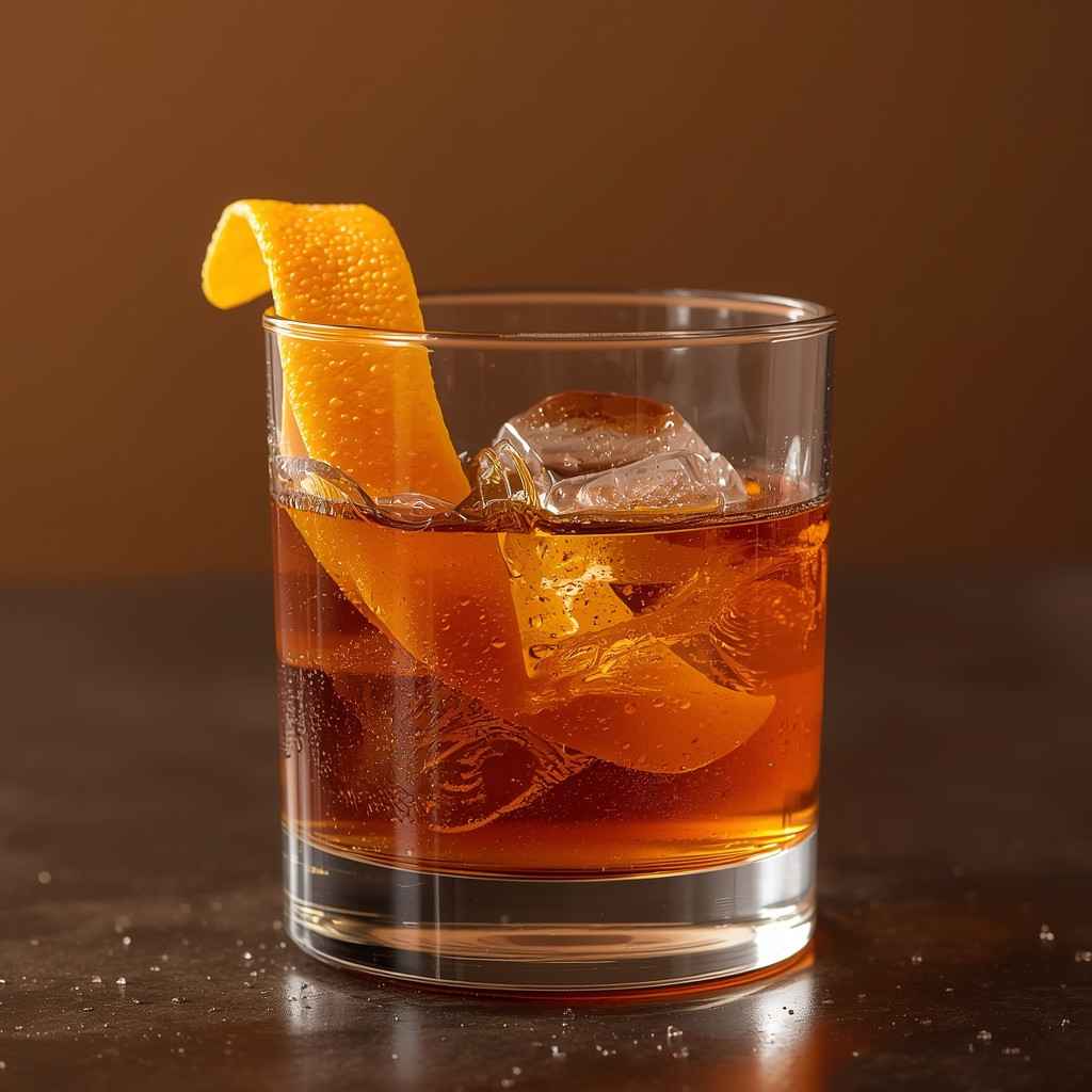 - Step 5: Garnish and Serve : Twist an orange peel over the glass to release its essential oils, then run it along the rim before dropping it in. Serve immediately.