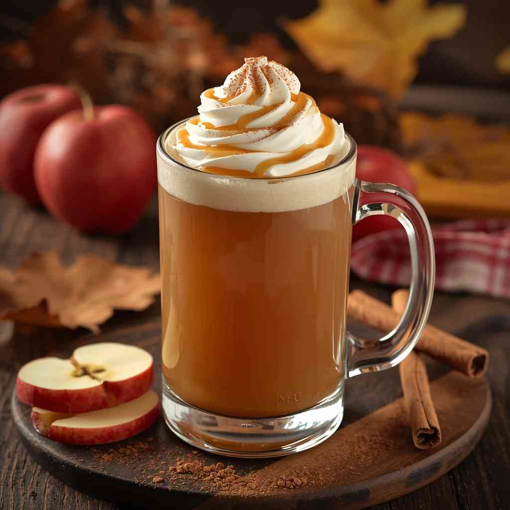 - Add the Toppings :Top each mug generously with whipped cream. Drizzle with caramel sauce and sprinkle with a pinch of cinnamon if desired. Garnish with a cinnamon stick or a thin apple slice for an elegant touch.