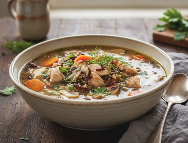 Chicken and Wild Rice Soup with Mushrooms and Carrots is a hearty, comforting soup that combines tender chicken, earthy mushrooms, sweet carrots, and nutty wild rice in a creamy broth. This classic soup is perfect for cozy weeknight dinners, chilly evenings, or as a nourishing lunch.