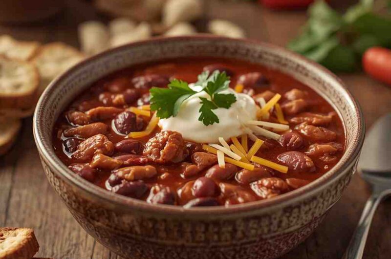 - Serve : Ladle chili into bowls and garnish with optional toppings like shredded cheese, sour cream, green onions, or cilantro.