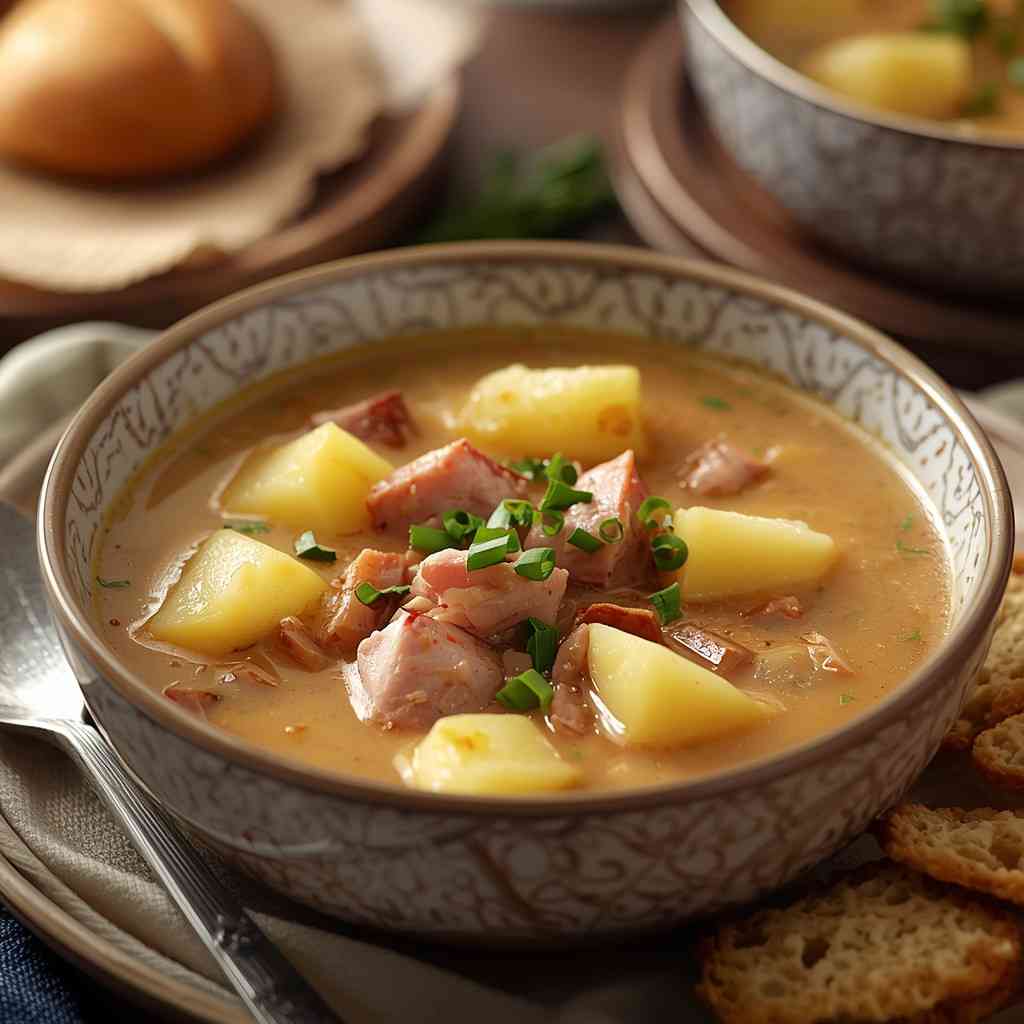 - Loaded Ham and Potato Soup – Top with crumbled bacon, cheese, and green onions (like a loaded baked potato!).