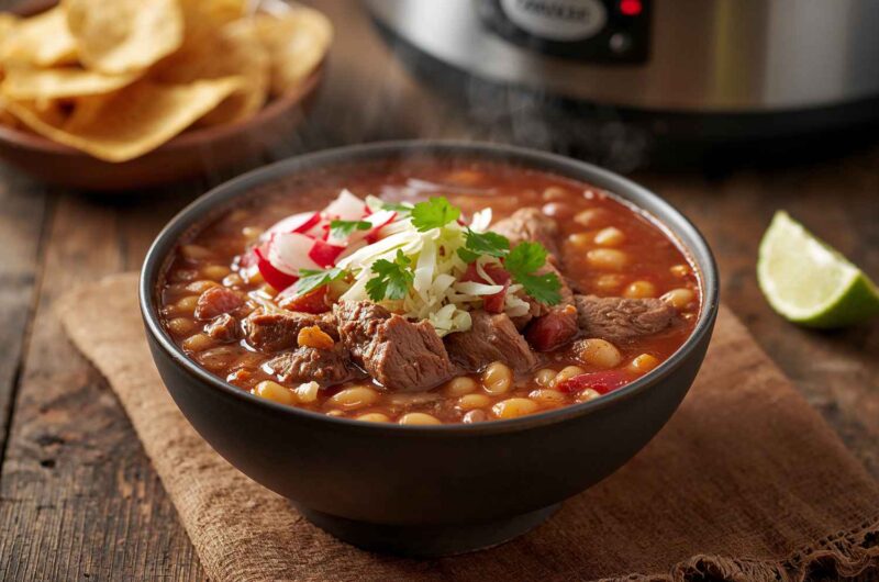 I love this recipe because it’s hands-off, deeply flavorful, and comforting. The slow cooker ensures the pork becomes tender without drying out, while the hominy adds a delightful texture. Each bite is a perfect mix of rich broth, tender pork, and fresh toppings.