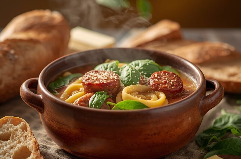 Crockpot Sausage and Spinach Tortellini Soup is a comforting, hearty, and flavorful meal that’s perfect for cozy nights or busy weeknights when you want dinner ready with minimal effort. Packed with Italian sausage, tender cheese-filled tortellini, fresh spinach, and a savory broth, this soup offers a delightful combination of textures and tastes in every spoonful.