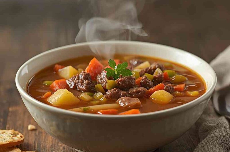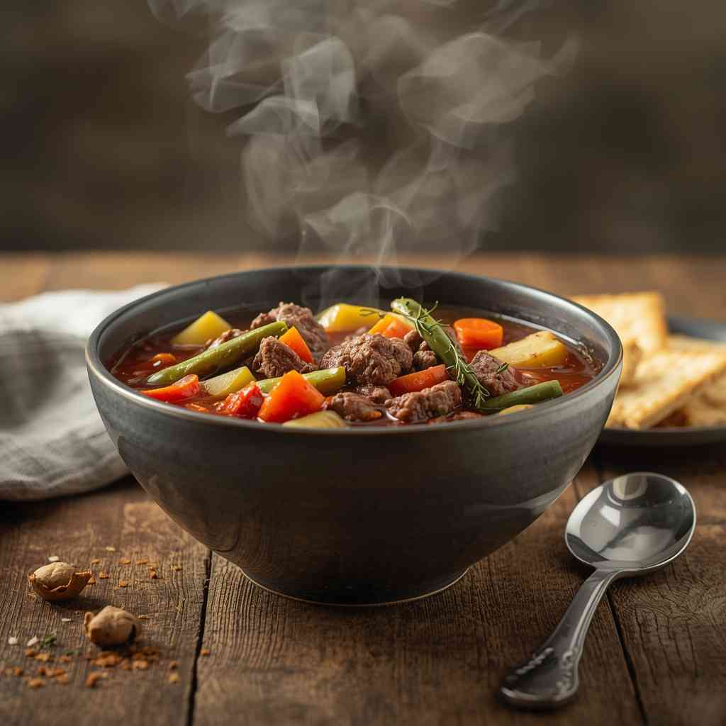 This soup has been loved for generations — it’s easy to prepare, budget-friendly, and customizable with whatever vegetables you have on hand. The ground beef adds a rich depth of flavor that pairs beautifully with the sweetness of carrots, corn, and tomatoes.