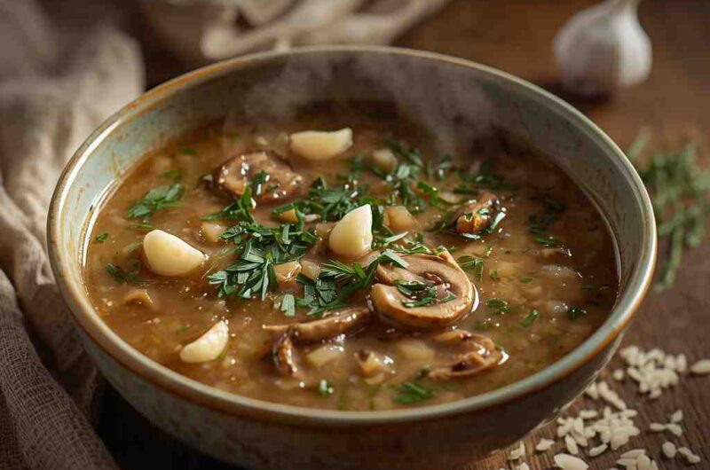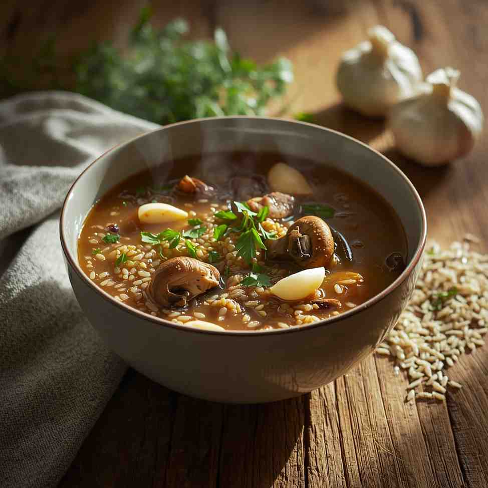 Mushroom and Wild Rice Soup with Garlic and Herbs